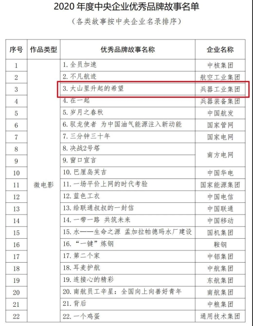 兵器工業(yè)集團(tuán)品牌建設(shè)案例入選2020年度100個(gè)國有企業(yè)品牌建設(shè)典型案例和100個(gè)優(yōu)秀品牌故事 |